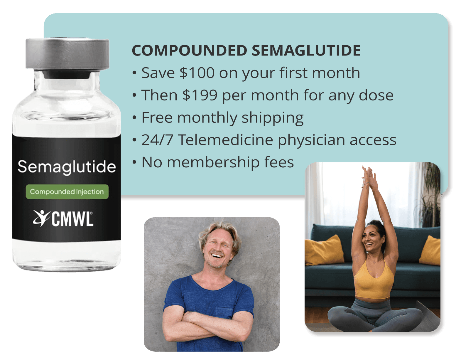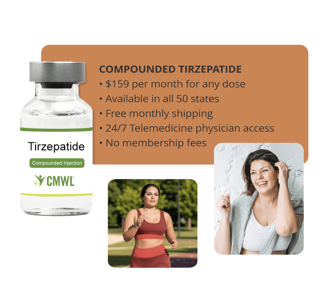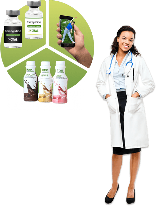 With 20 years of supporting patients in achieving weight loss and long-term weight maintenance goals, you can trust CMWL to provide access to top-quality programs and products personalized to your specific needs. Many people who have challenges losing weight through healthy diet and exercise alone can benefit from incorporating GLP-1 medication (semaglutide or tirzepatide) into their weight loss efforts. With education and a complete set of tools, we’ll help you optimize your weight and wellness goals each step of the way.